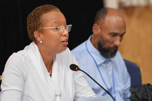 H.E. Ms. I. Rhonda King, Ambassador and Permanent Representative of Saint Vincent and the Grenadines to the United Nations (UN) and Interim Chair of the SIDS DOCK IWON, addressing delegates at the First Meeting of the SIDS DOCK Island Women Open Network (IWON), held on the margins of the First Caribbean Waste-to-Energy Technology Expo and Conference.
